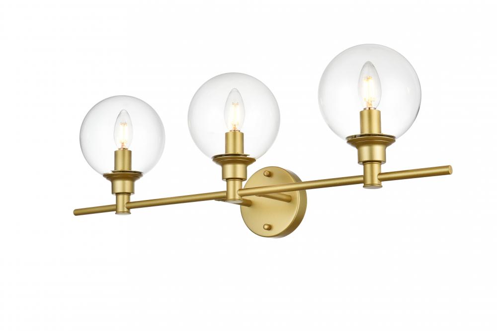 This armed sconce features a streamlined and minimalistic design that complements any space in your home. Shown with the clear glass shades, this wall sconce is versatile and can be placed in a bathroom,entry way, or hallway. Compatible with dimmers, so you'll have the right amount of light in any given time of the day. The hardwired fixture is safe to use in damp locations. Made from iron with a modern finish, it includes a round backplate and a matching arm that holds in place three 40W bulb ( sold separately). Available in multiple finishes. Can be installed as an uplight or a downlight.