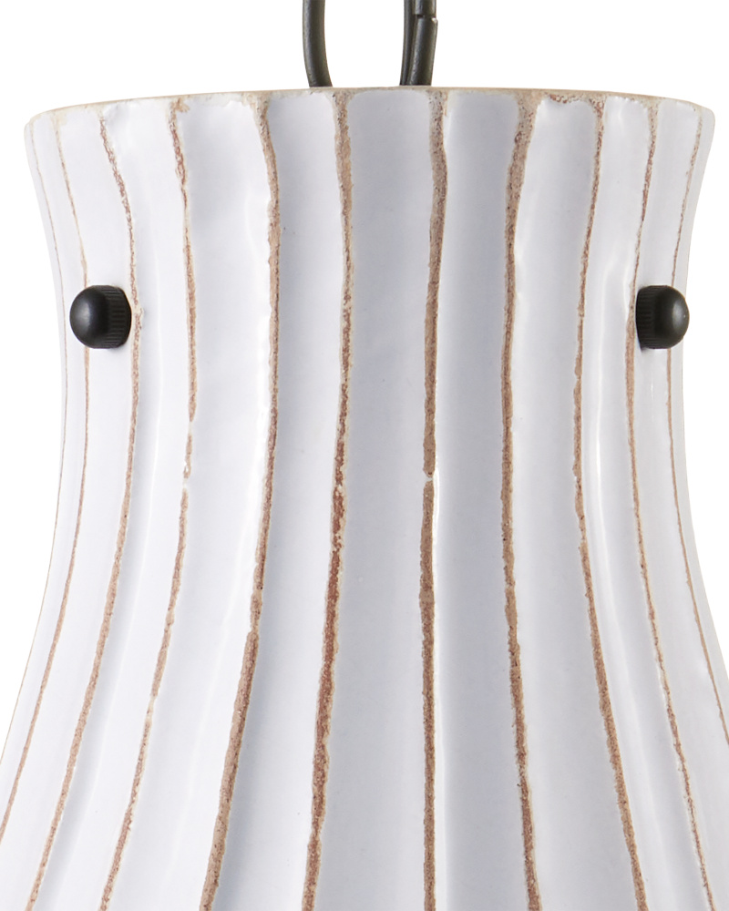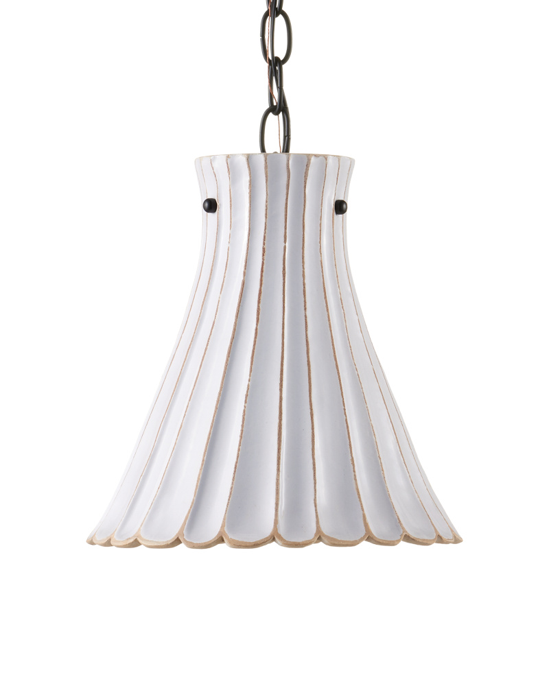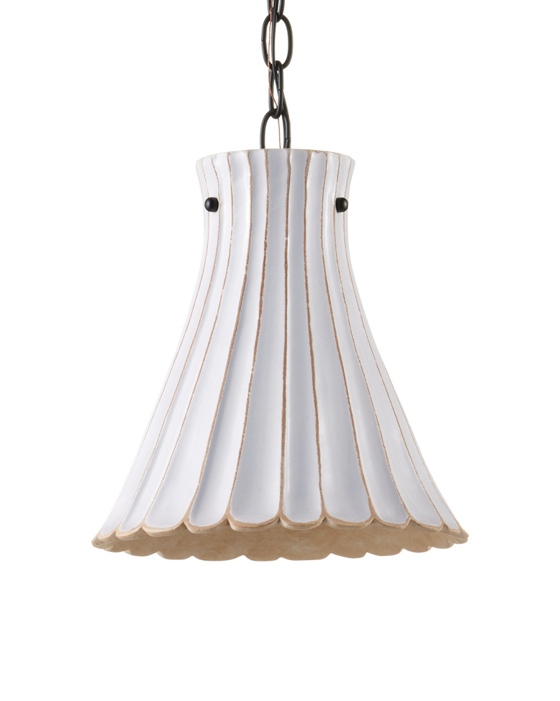 Gently flaring outward, the Jazz Pendant has a fluted silhouette that culminates at the bottom in scallops to dress up the retro-inspired fixture. A snowy white crackle finish covers the hand-thrown terracotta shade to give the pendant a simple modern look. This is one of our offerings that is perfect for clustering or hanging in rows for an even jazzier flair.