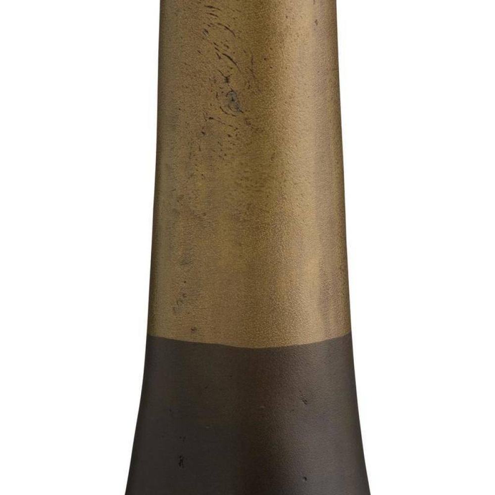 Inspired by Matisse's fluid shapes, a free-form floral motif lends an artistic edge to the beige crackled resin surface of our table. The bronze iron fluted base is enhanced with antique brass iron, adding a two-tone accent to intrigue the eye. Finish will vary.
