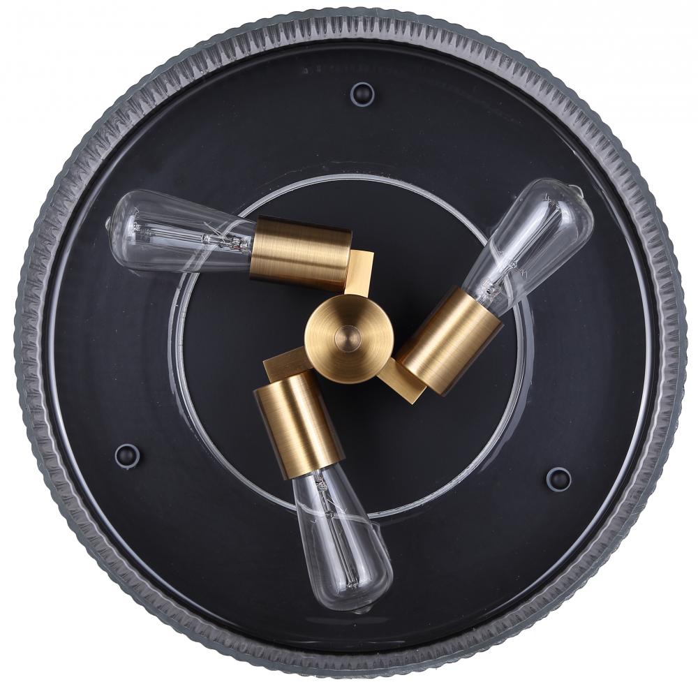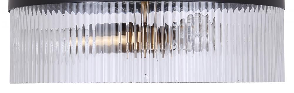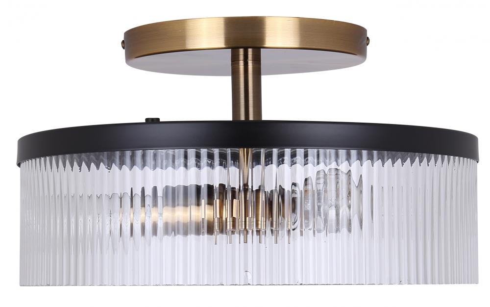 JENNER 15 in. 3-Light Contemporary Matte Black and Gold Semi-Flush Mount with Clear Ribbed Glass Sha