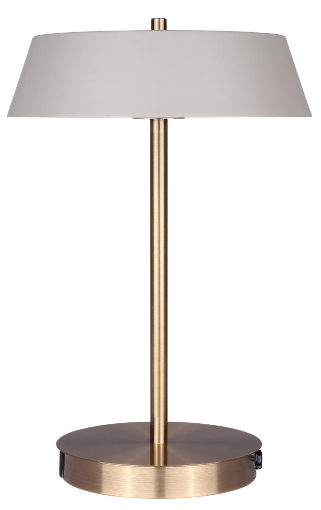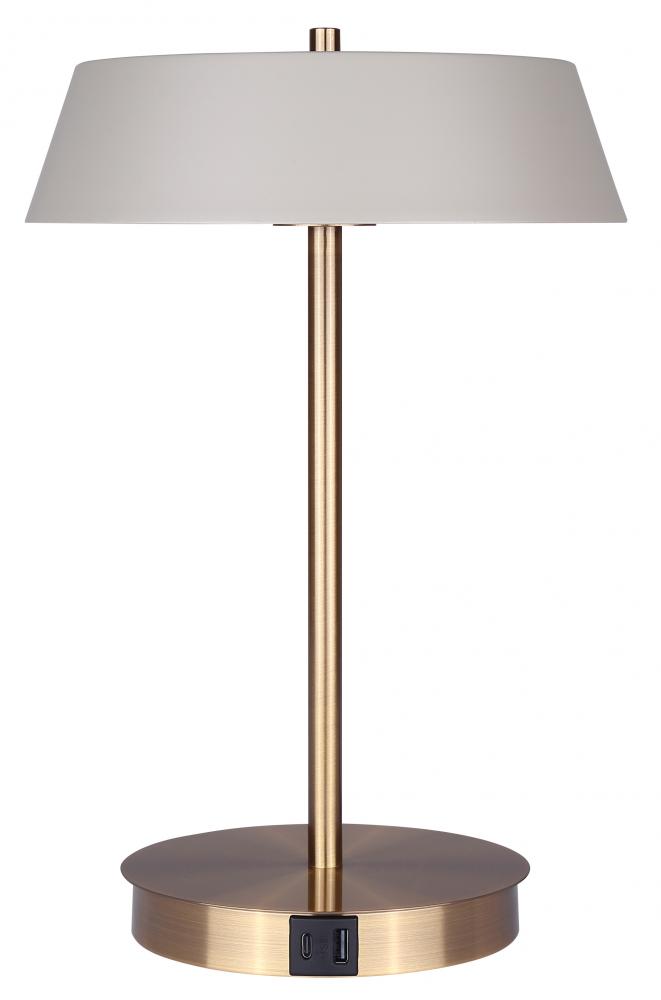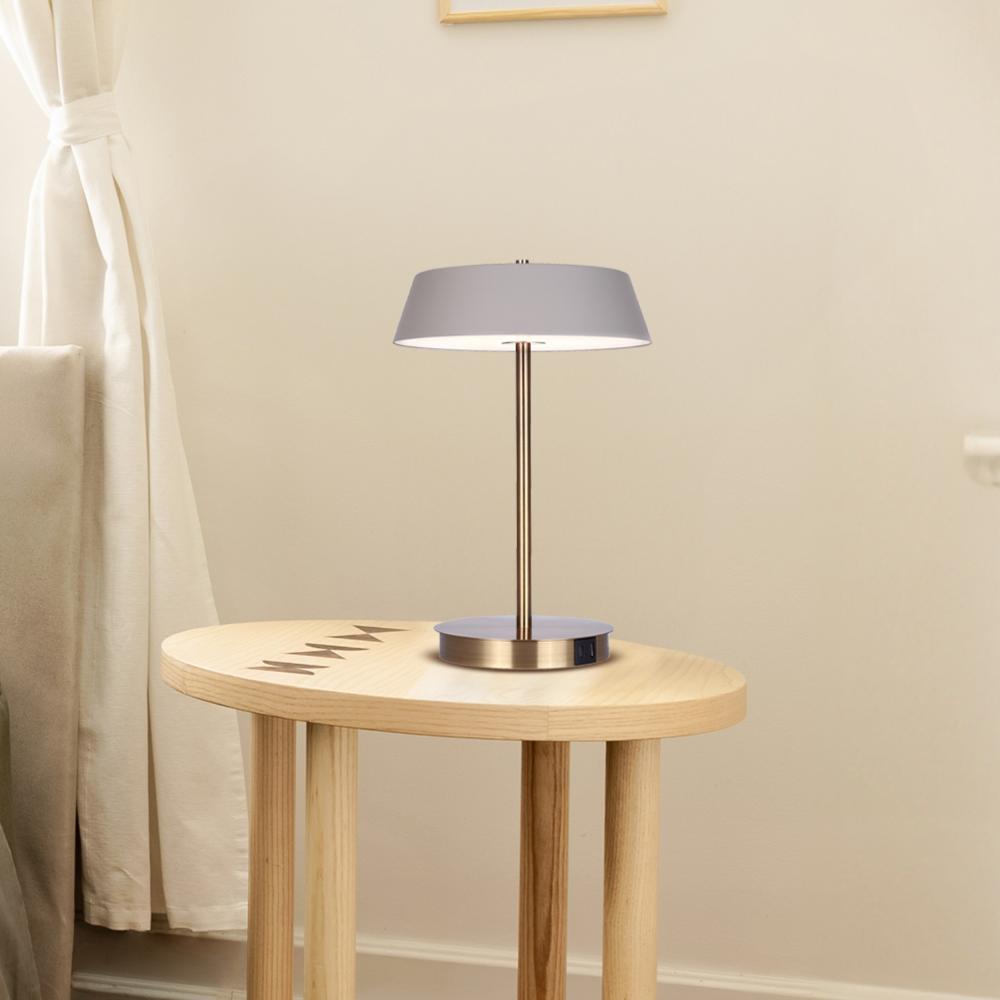 Jessa 14 in. Integrated LED Gold Table Lamp with Gray Metal Shade, On/Off Touch, and USB Chargeports