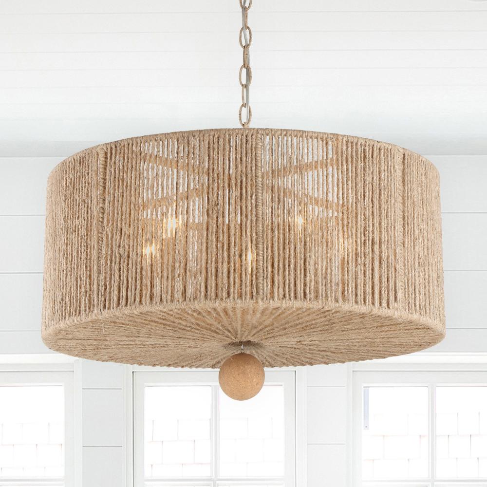 The natural jute (rope) of the Jessa is hand woven to create the drum shape as well as the bottom diffuser to give it an enclosed look.
