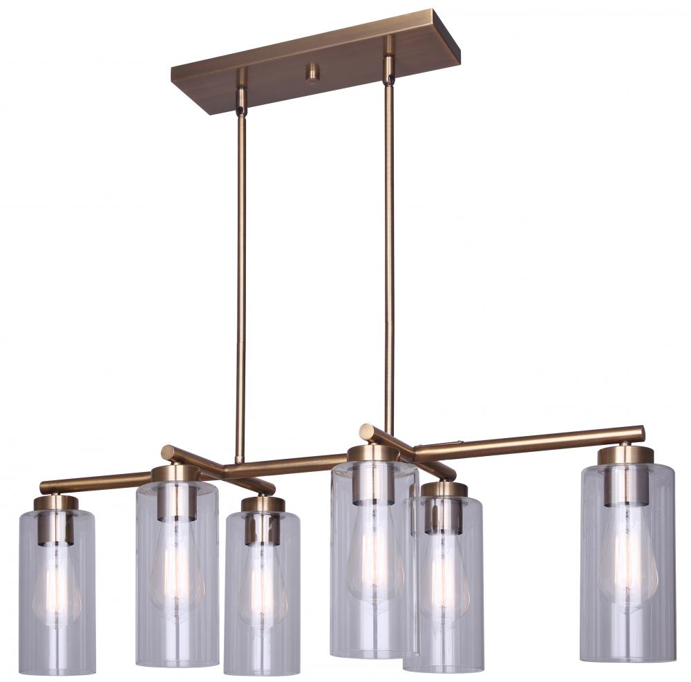 The Canarm JETT ICH671B06GD is a six-light rod chandelier that exudes contemporary elegance. With a luxurious Gold finish and clear glass shades, it measures 34.5 inches wide and offers an adjustable height from 18.75 to 60.75 inches. Each 100W Type A bulb provides ample lighting, making the JETT ideal for large spaces such as dining areas or open-concept living rooms. Its sleek design and adaptable height make it a perfect centerpiece for any modern home seeking a blend of style and functionality.