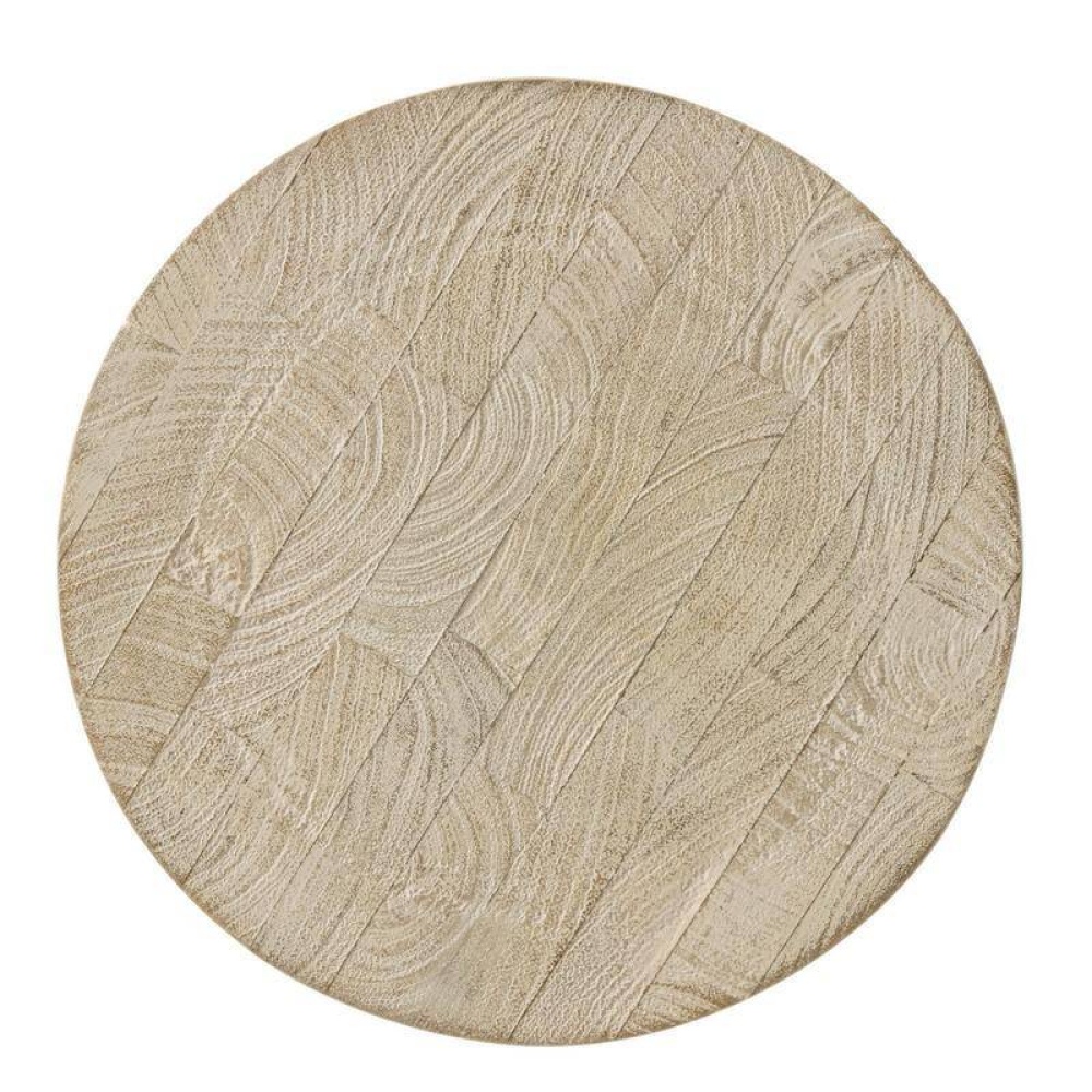 Our whitewash mango wood table lends a curvaceous charm to any sofa or seating area. Reminiscent of natural wood sculptures found on the coast, this feminine style is accented with carved-out lines along the side that enhance its sculptural shape. Finish will vary.