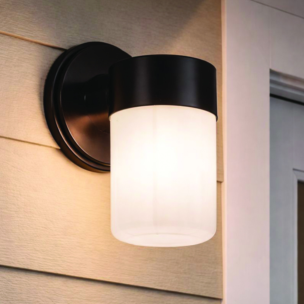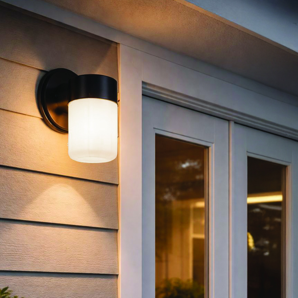 The JUDE outdoor wall light blends modern minimalism with timeless appeal, with a sleek matte black finish and smooth, rounded edges. Inspired by simple vintage lanterns, its compact design feels both refined and versatile, perfect for flanking garage doors, patios, or entryways. The opal strip glass softens the glow of a single 60W bulb, providing light that is functional yet warm and inviting. Compact at 4.625 inches wide by 9.625 inches high, JUDE enhances curb appeal while complementing a variety of architectural styles. Built for exterior durability, it is a stylish upgrade to any home façade.