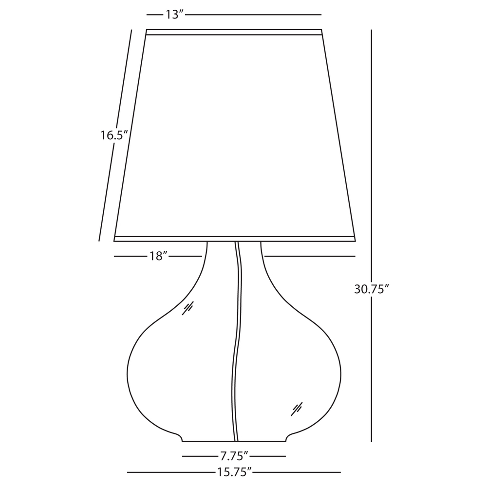 Junes exaggerated curves give this lamp a slightly funky feel that adds just the right amount of attitude to a space. - Clear Glass Body with Black Fabric Wrapped Cord June Table Lamp with White Organza Fabric Shade