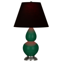Jungle Glazed Ceramic with Antique Silver Finished Accents Small Double Gourd Accent Lamp with Pearl Dupioni Fabric Shade - Our Double Gourd collection features a simple but gracefully curving silhouette. Available in a wide array of vibrant colors and several different base finishes.