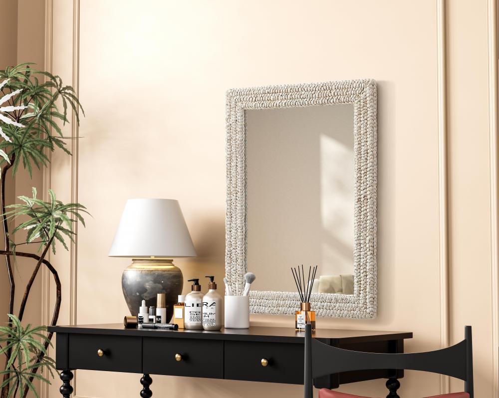 Transform your space with this stunning wall mirror that blends natural charm with functional design. Crafted from MDF, cornhusk, and high-quality mirror, the textured woven frame brings warmth and character to your decor. Whether you're decorating a hallway, living room, or bedroom, this mirror comes in a variety of shapes—including rectangle, round, oval, and arch—along with multiple size options to perfectly suit your needs. Designed for versatility, the mirror features four inset metal hangers, allowing you to mount it either vertically or horizontally with ease. Its reflective surface not only adds a touch of brightness but also creates the illusion of a larger room, enhancing your space. with durable materials and ready-to-hang hardware, this mirror is as practical as it is stylish, making it a must-have piece for any home.