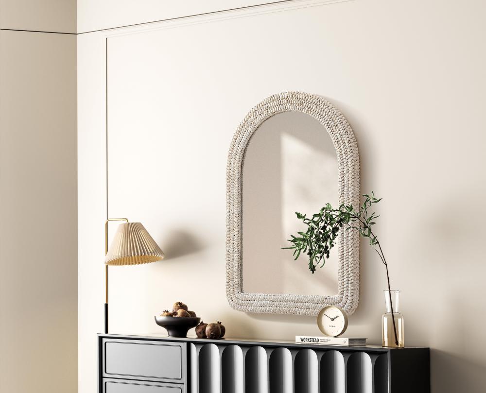 Transform your space with this stunning wall mirror that blends natural charm with functional design. Crafted from MDF, cornhusk, and high-quality mirror, the textured woven frame brings warmth and character to your decor. Whether you're decorating a hallway, living room, or bedroom, this mirror comes in a variety of shapes—including rectangle, round, oval, and arch—along with multiple size options to perfectly suit your needs. Designed for versatility, the mirror features two inset metal hangers, allowing you to mount it vertically with ease. Its reflective surface not only adds a touch of brightness but also creates the illusion of a larger room, enhancing your space. with durable materials and ready-to-hang hardware, this mirror is as practical as it is stylish, making it a must-have piece for any home.