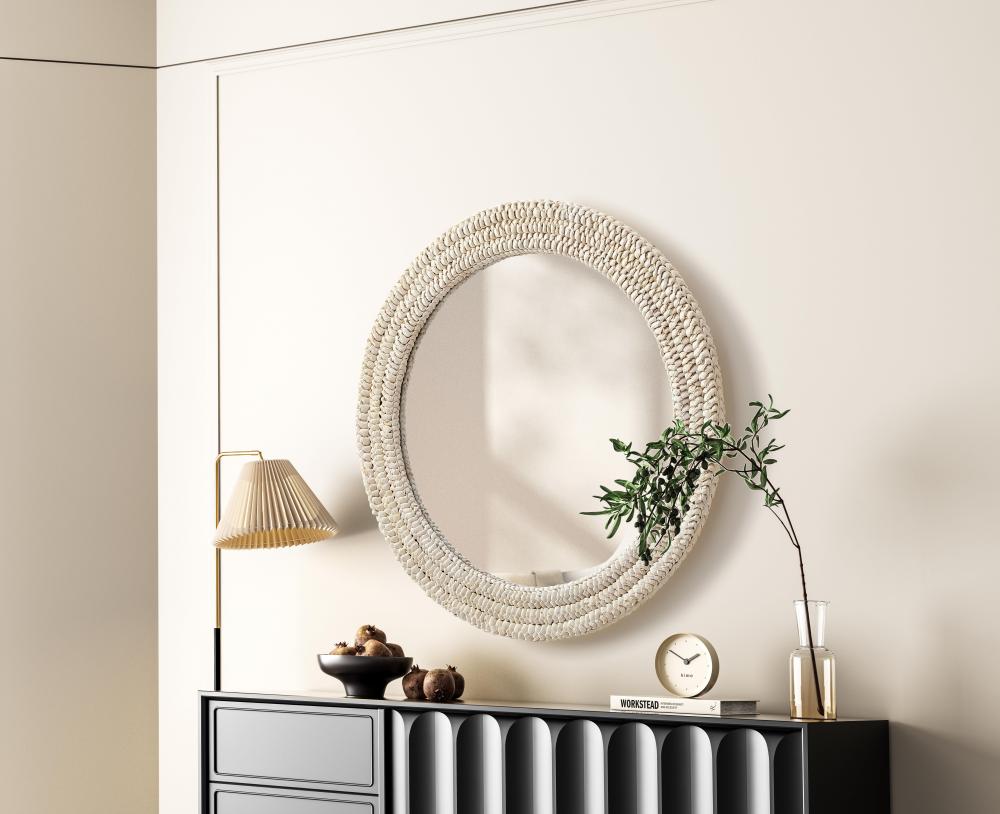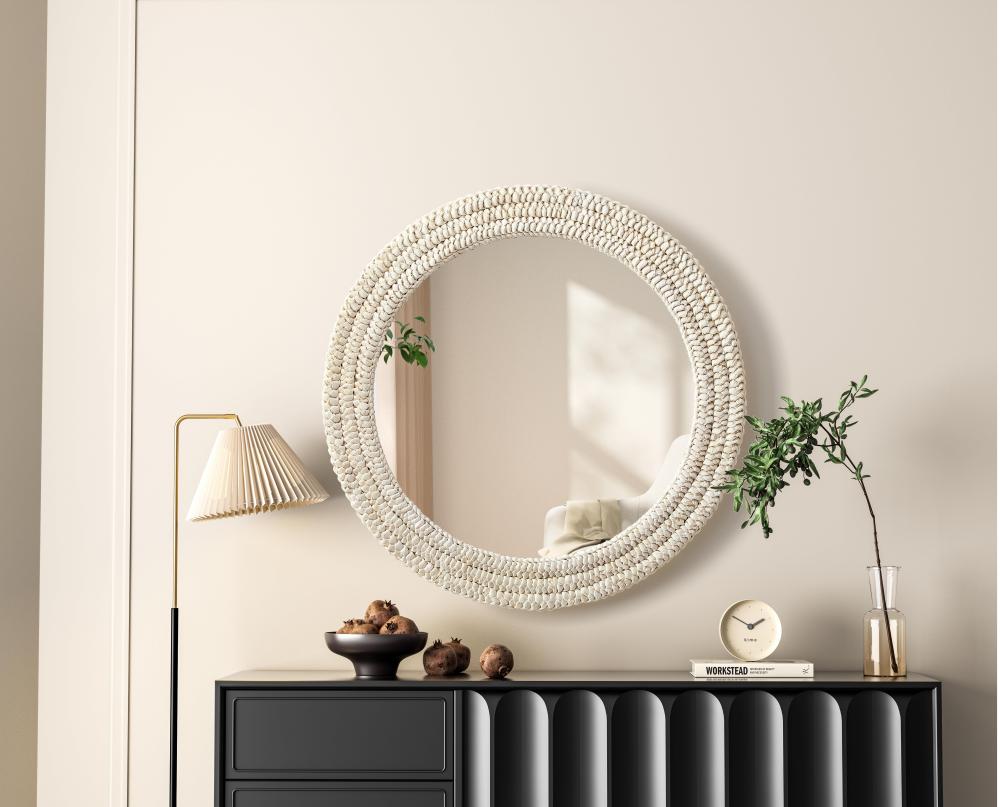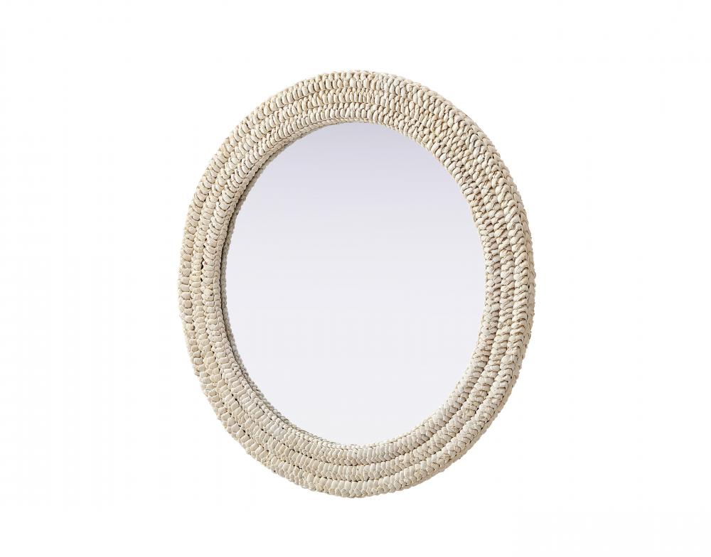 Transform your space with this stunning wall mirror that blends natural charm with functional design. Crafted from MDF, cornhusk, and high-quality mirror, the textured woven frame brings warmth and character to your decor. Whether you're decorating a hallway, living room, or bedroom, this mirror comes in a variety of shapes—including rectangle, round, oval, and arch—along with multiple size options to perfectly suit your needs. Designed for versatility, the mirror features two inset metal hangers, allowing you to mount it vertically with ease. Its reflective surface not only adds a touch of brightness but also creates the illusion of a larger room, enhancing your space. with durable materials and ready-to-hang hardware, this mirror is as practical as it is stylish, making it a must-have piece for any home.