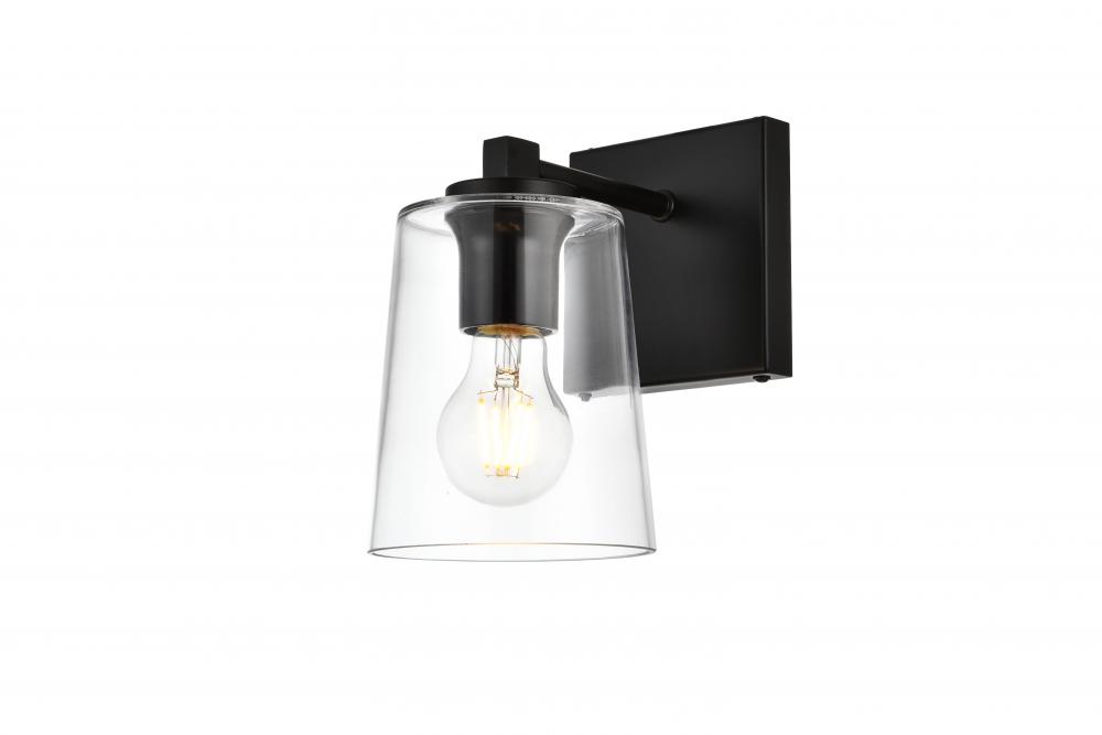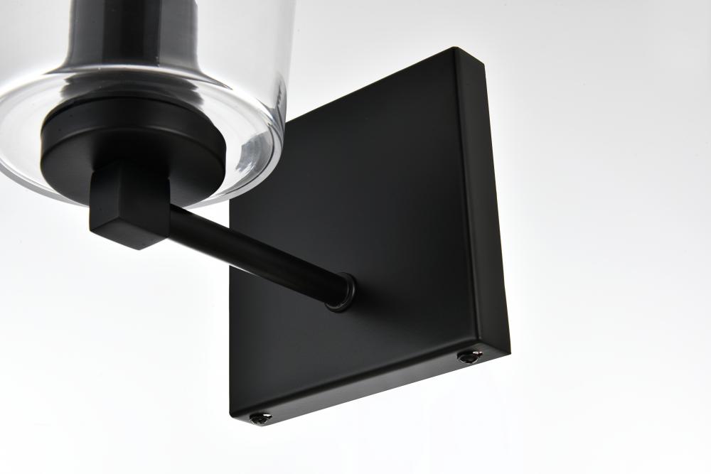 Defined by a sleek metal arm extends to suspend the clear cylinder glass shade. A contemporary stunner, it shows off the straight line details from the backplate and the streamline thin metal arm. Compatible with dimmers, so you'll have the right amount of light in any given time of the day. Completely versatile, you can place this wall light as an uplight or downlight. Rated for use in damp locations, this will work perfectly over a vanity in your bathroom.