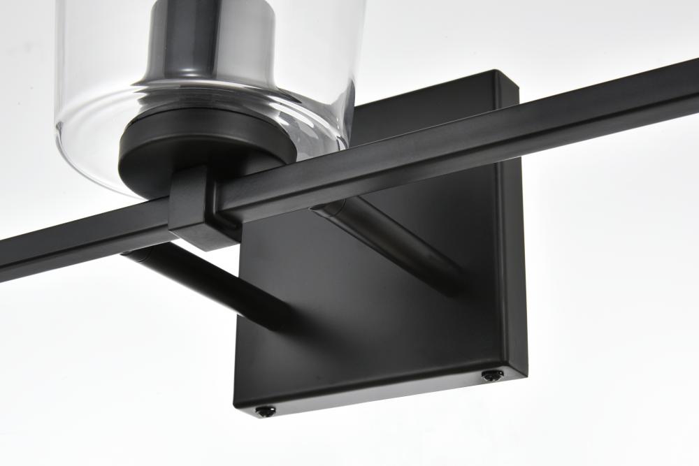 Defined by a sleek metal arm extends to suspend the clear cylinder glass shade. A contemporary stunner, it shows off the straight line details from the backplate and the streamline thin metal arm. Compatible with dimmers, so you'll have the right amount of light in any given time of the day. Completely versatile, you can place this wall light as an uplight or downlight. Rated for use in damp locations, this will work perfectly over a vanity in your bathroom.