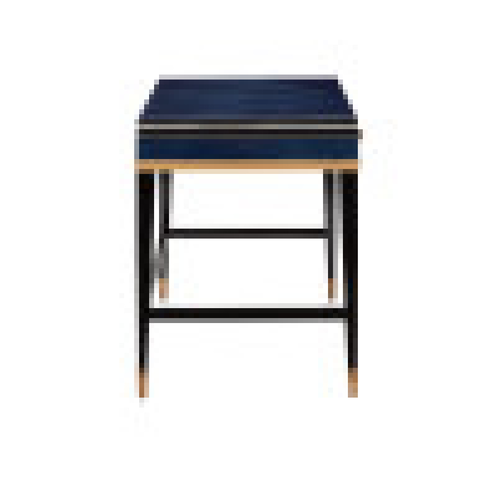 The Kallista Large Blue Desk is a grander version of the smaller writing desk to provide more surface area with equal panache. The mix of dark sapphire and glossy caviar black finishes enlivens the sycamore veneers, and the woodgrain brings the cabinet a hint of distressing. The sleek lines of the piece seem even more tailored thanks to the antique brass detailing. The shape of the door pulls echo this accent. Design details include brass ferrules and soft-close door hinges.