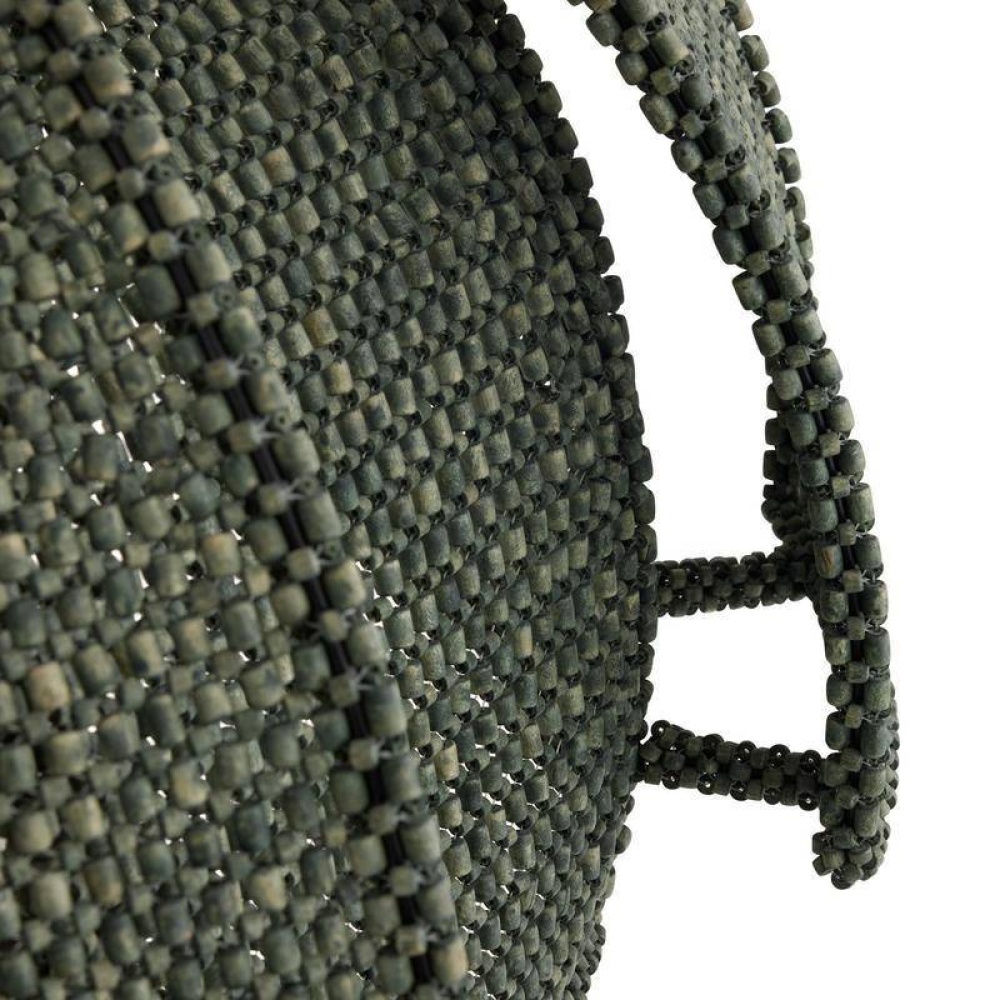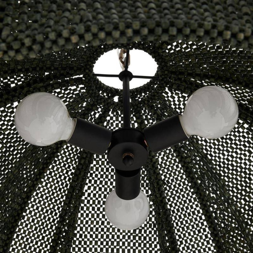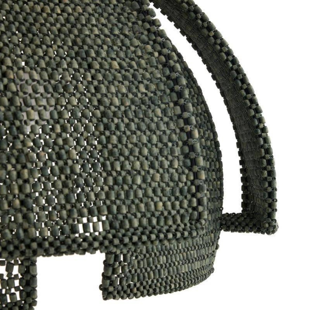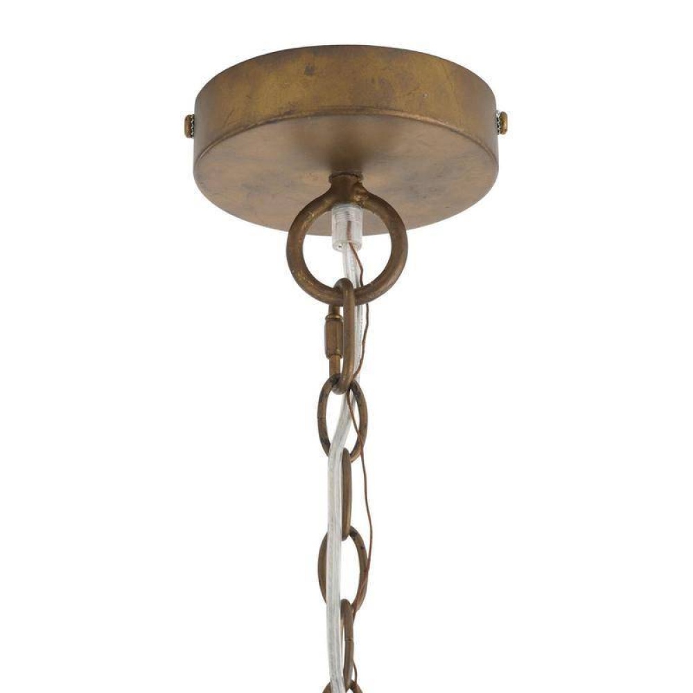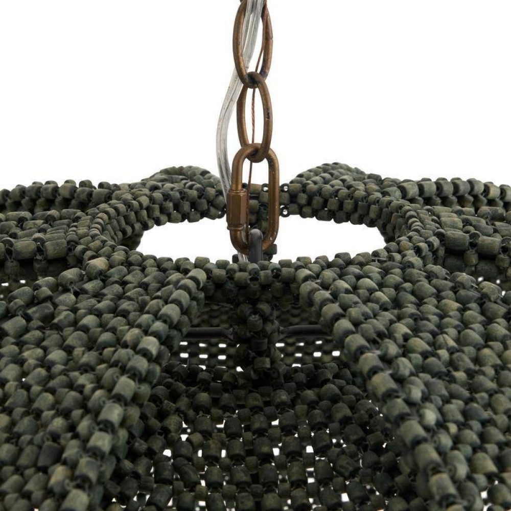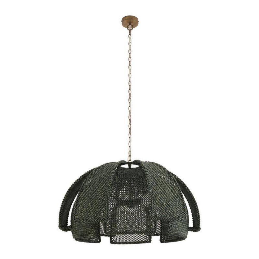 With the effect of peeling away layers, latticed shades recalling coconut shells are suspended from an antique brass iron chain. Delivering an alluring lace effect, each panel of eucalyptus-stained rattan offers the ultimate display of shadow and light. Finish will vary.