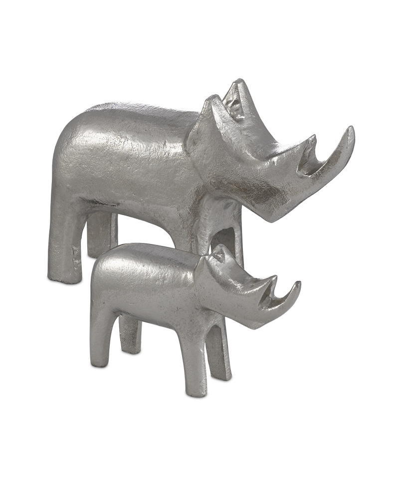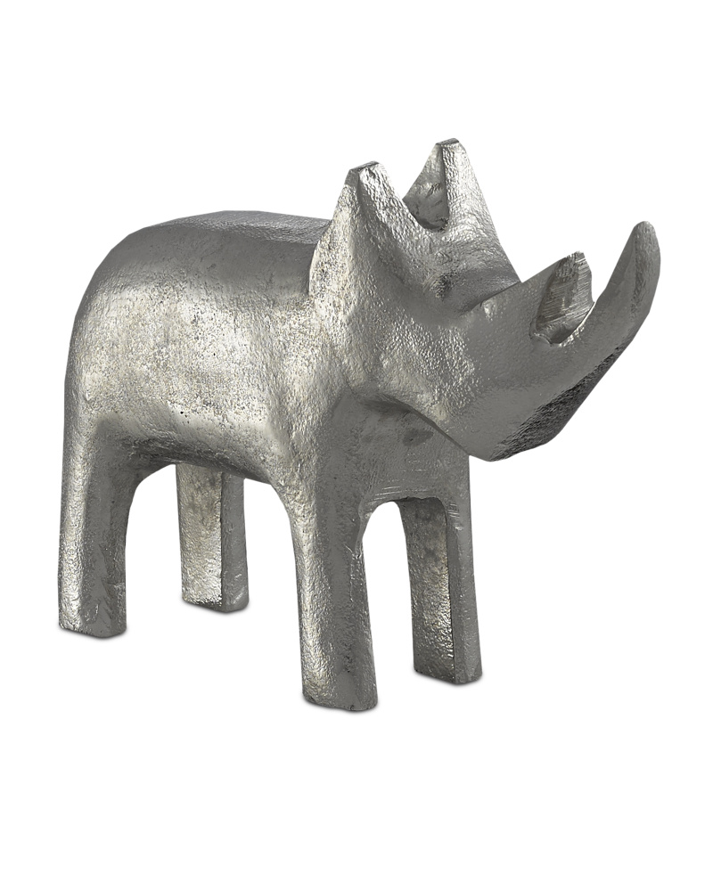 Place our Kano Silver Large Rhino on a shelf or atop a stack of coffee-table books and watch its gleaming silhouette make a commanding statement. The decorative sculpture is made of cast aluminum that has been treated to a silver finish. The stippled surface brings this rhino with its implied features an extra dose of charm and the tried-and-true feeling that bling is meant to turn up the volume on any style. We offer the Kano in several sizes and finishes.
