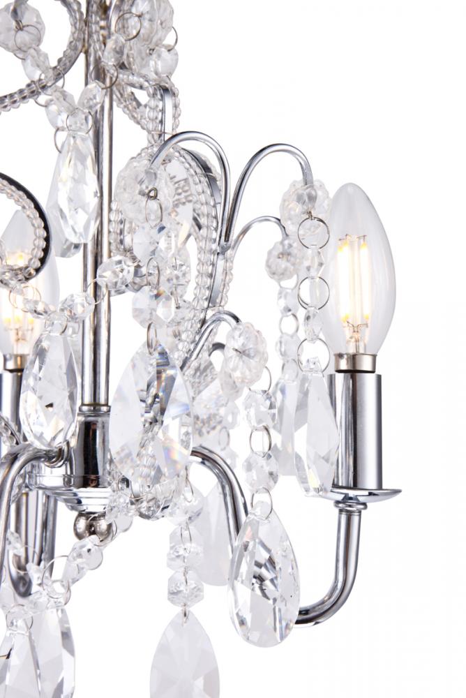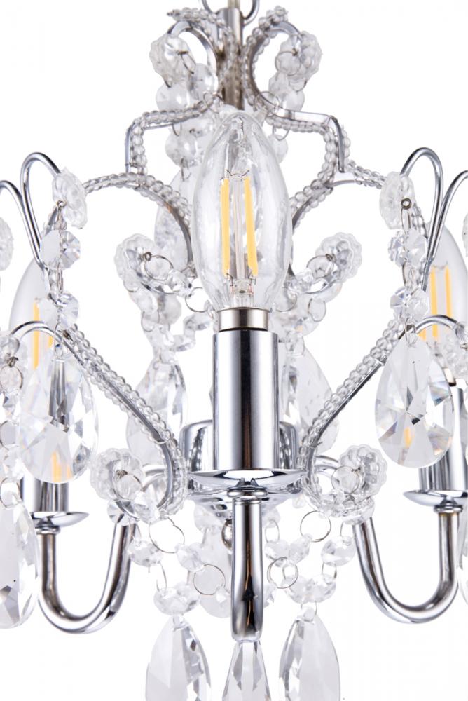 Give into temptation with Karter collection hanging fixtures. A swirling Iron frame in a polished-Black or Chrome finish dangles from a sturdy chain and circular mounting fixture. Strands of corresponding Black or clear round beads coat the internal arms to add a variety of textures, while royal-cut Black or clear teardrop pendants and octagon Crystal strands are placed generously throughout. Flower-shaped bobechés and floral Crystal accents are the perfect finishing touch for this extravagant, yet compact beauty. A lavish addition to a bedroom, bathroom, or living room.