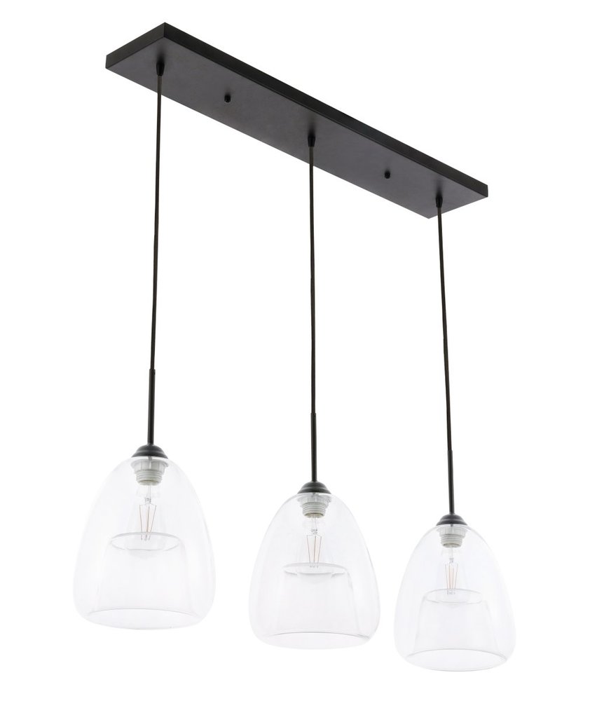 The Kason Collection pendant lamp is contemporary and the perfect lighting fixture in any home. Its urban-style design will create a contemporary aesthetic and the light can illuminate any room in your home, whether its your dining room, living room, or entry way. The three lights hang suspended from a canopy, ensuring that no corner will be left in shadow. Available in a black finish with a hemispherical shade, brighten your home with light and contemporary style (light bulbs not included).