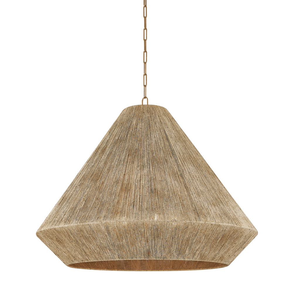 Commanding attention, the Keats pendant features a generous scale and tailored use of natural materials. A central candle cluster fills the conical shade with a warm glow, accentuating the beauty of the woven jute. Keats is available in two sizes and two material combinations: Patina Brass with natural bleached jute for a light, organic feel, or Bronze with black jute for a bolder contrast.