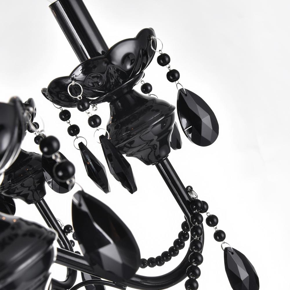 Striking Design A sleek black candelabra frame with cascading faceted crystals for a luxurious look.