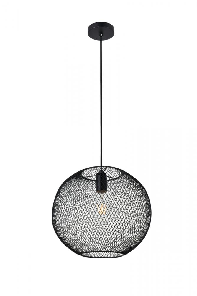 The sophisticated Keller hanging pendant lamp offers a contemporary design and will enlighten your home’s entryway, kitchen, bedroom, den, or rec room. Its distinctive shade, comprised of black metal, features a matrix design with the woven appearance of netting. When lit, the lamp radiates vivid shadows throughout the room. The fixture accepts a filament-style incandescent or LED blurb, and is supported with a disk-shaped canopy.