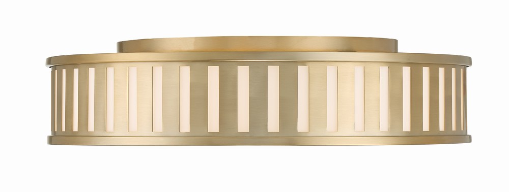 The contemporary Kendal collection makes a statement with its graphic uniform pattern. Its metal frame surrounds white glass in this elegant drum-shaped ceiling mount. The high contrast of Vibrant Gold, Black Forged, or Polished Nickel against white glass is a great way to add a touch of drama to a room.