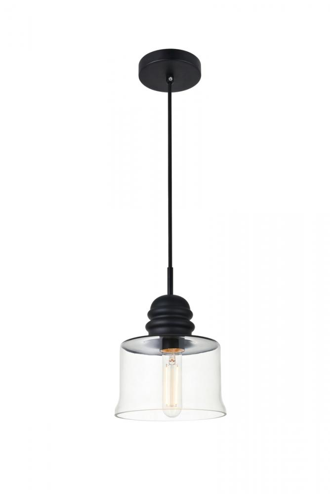 Feature 1: pendant lamp features a black and clear glass sugar pot shade with open center for easy bulb replacement; requires an incandescent or led e26 bulb (not included)