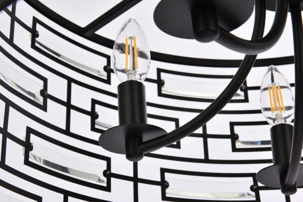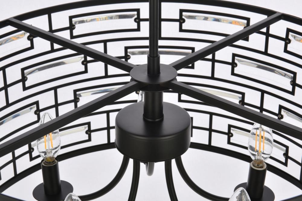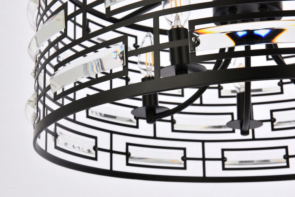 Clear rectangular crystals reflect the soft glow of candelabra bulbs