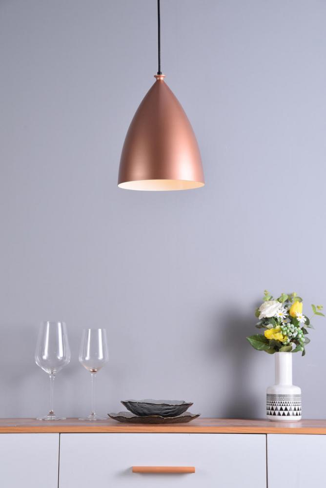 Have your home be stylishly contemporary with the Kenneth pendant lamp. The elegant curve of the shade is juxtaposed by the modernity of the contrasting honey gold finish exterior and white finish interior. Smart and handsome, hang this pendant anywhere in your home--dining room, living room, or even your office.