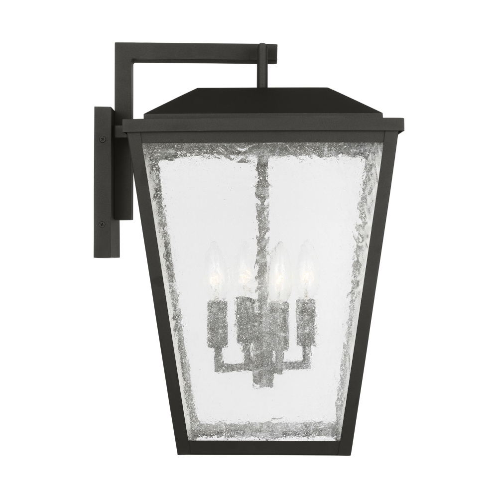 Crafted with Aluminum in a Textured Black finish with clear seeded glass shades