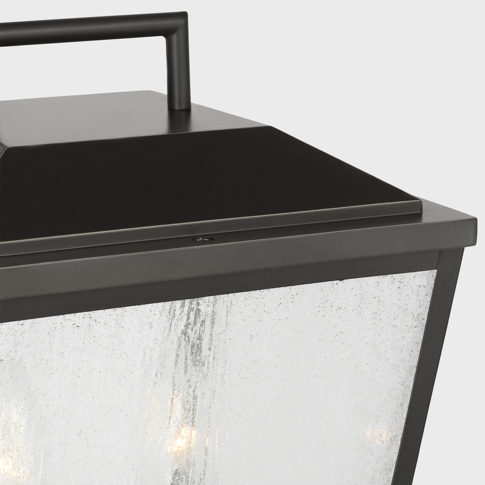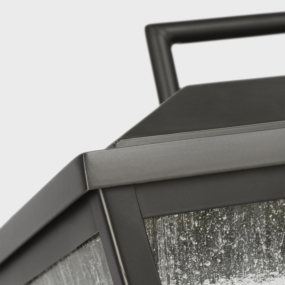 Crafted with Aluminum in a Antique Bronze finish with clear seeded glass panels