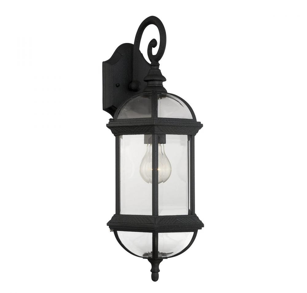 Classic exterior fixture available in two finishes - Textured black and Rustic bronze with Clear Beveled glass.