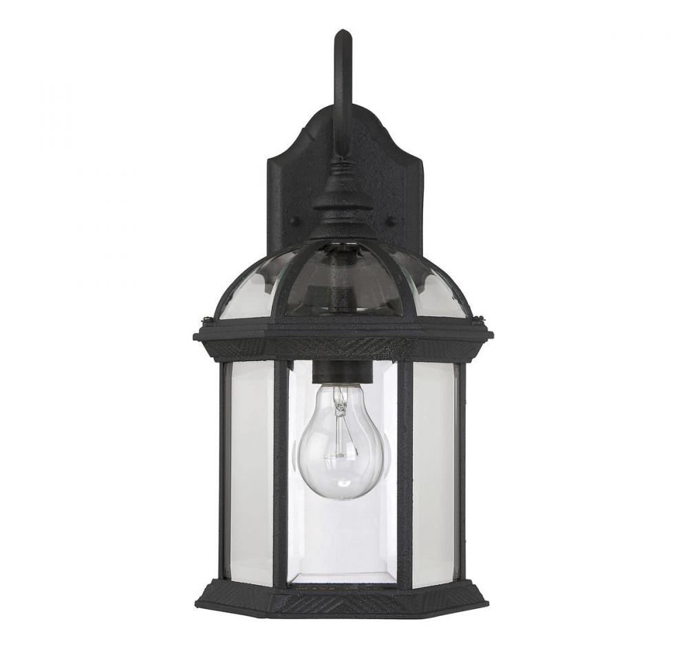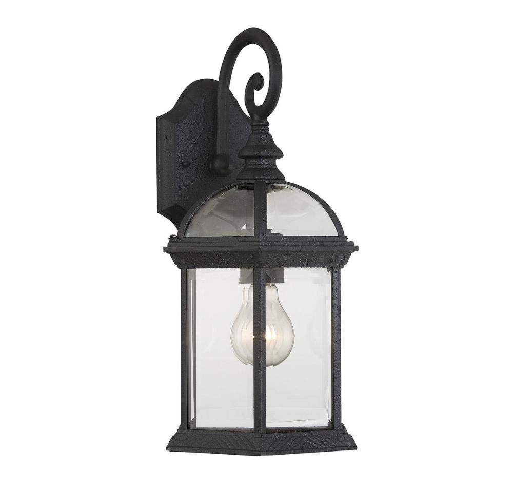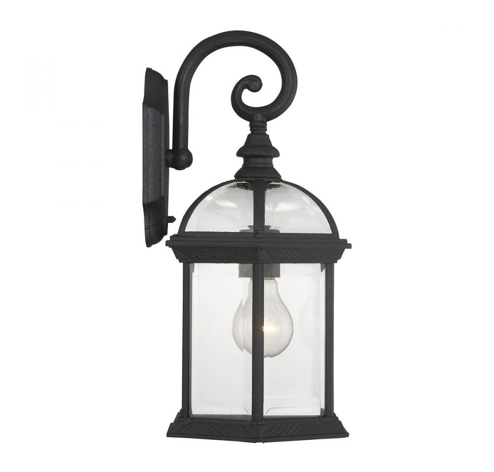 Classic exterior fixture available in two finishes - Textured black and Rustic bronze with Clear Beveled glass.