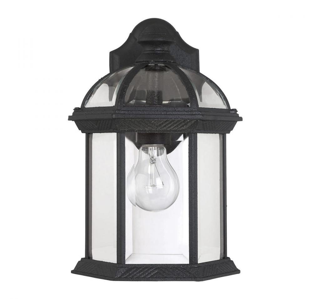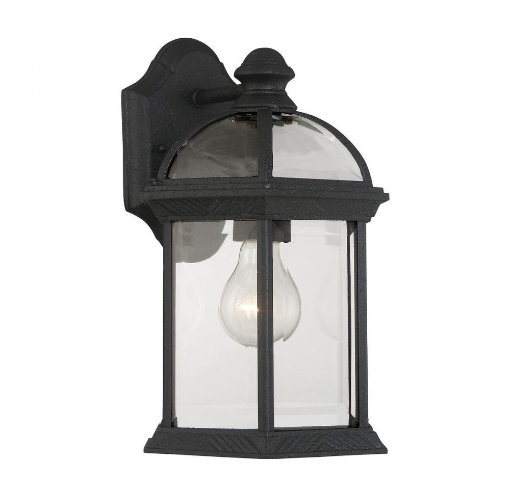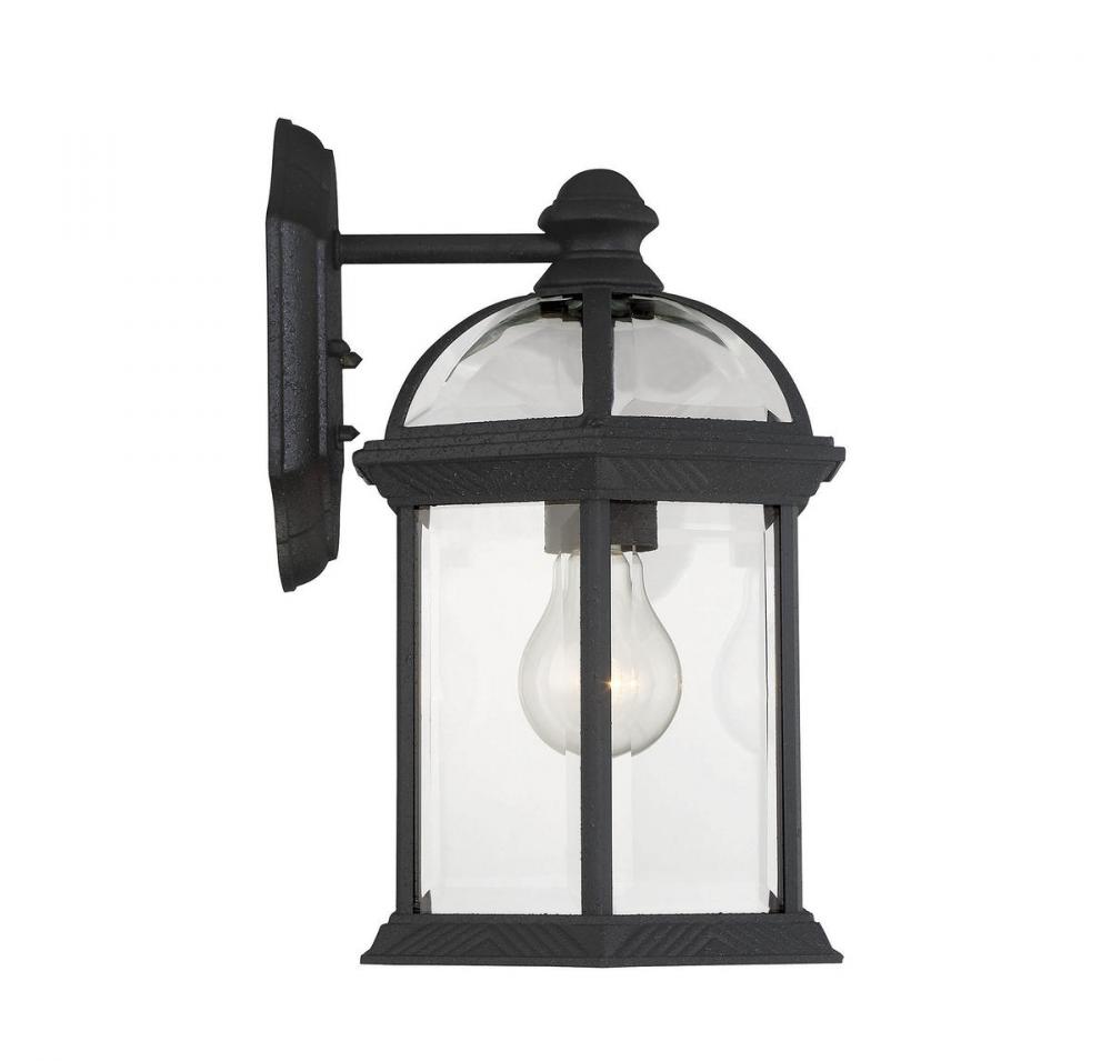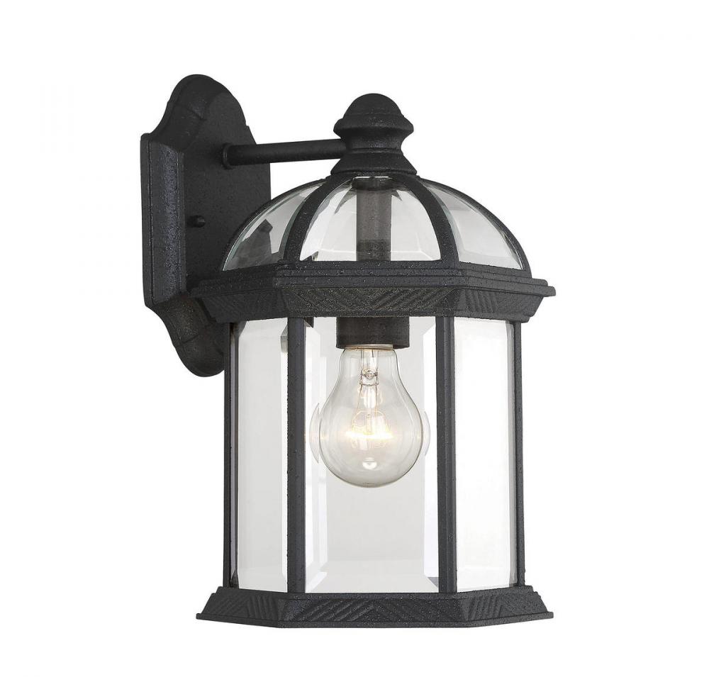 Classic exterior fixture available in two finishes - Textured black and Rustic bronze with Clear Beveled glass.