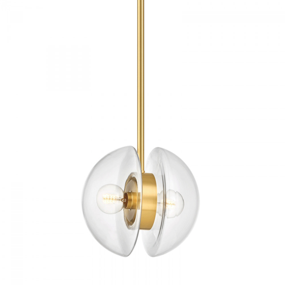 Kert combines glass and metal in a fresh and functional way. A pair of half-round, clear glass shades are enclosed behind the bulb and mounted on a ring of metal at the center, giving the piece an impressive, sculptural feel. Large in scale and highly versatile, Kert is available as a wall sconce that can be mounted vertically or horizontally, a linear, and a pendant and chandelier in two sizes.