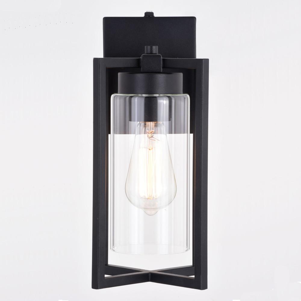 Black Bulb Cage Clear Contemporary Cylinder Deck Dimmable Down Driveway Dusk to Dawn Energy Efficient Saving Entrance Entryway Exterior Fixture Front Door Garage Glass Industrial Lamp Lantern LED Compatible Lighting
