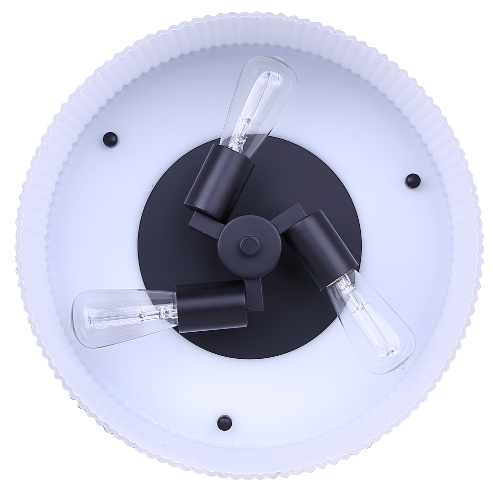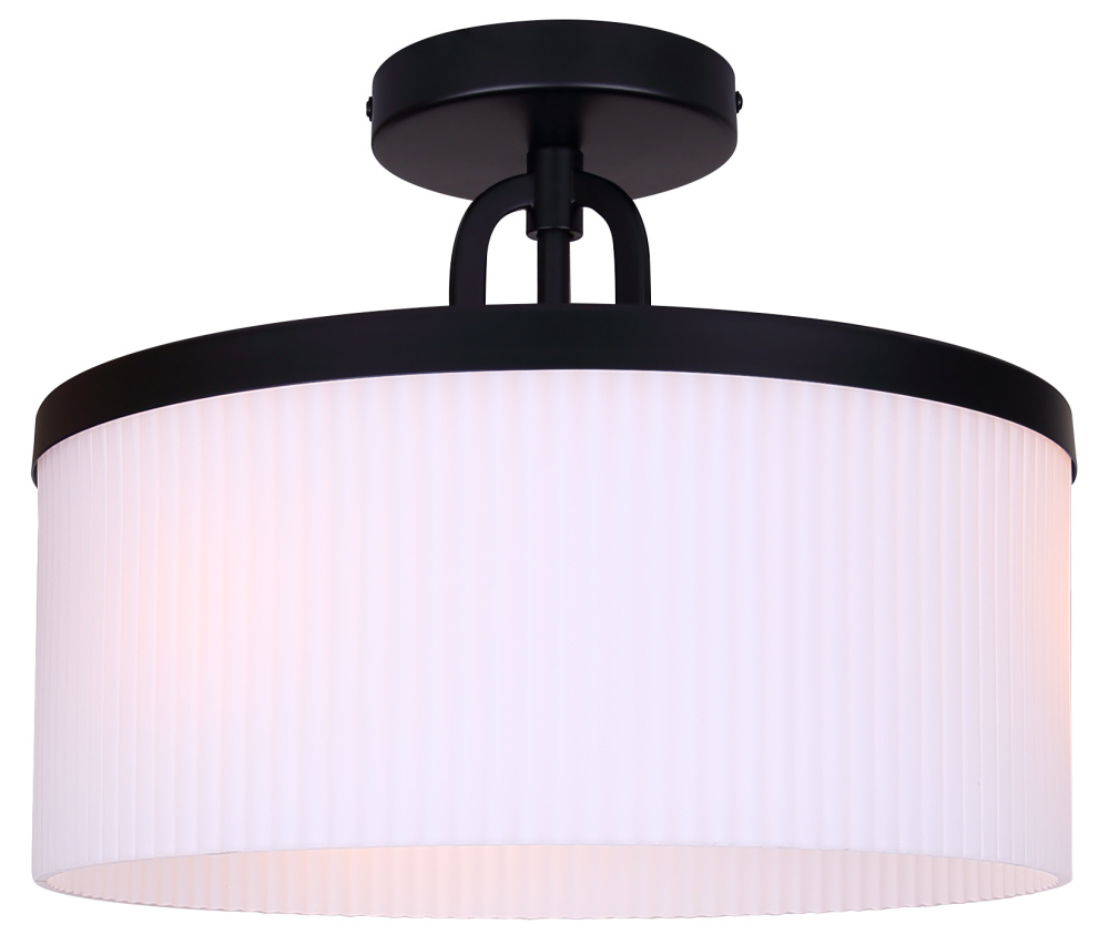 Quietly Refined Design: A matte black frame and ribbed flat opal glass blend texture and finish for timeless appeal. The form offers a balanced, graceful presence in any room.