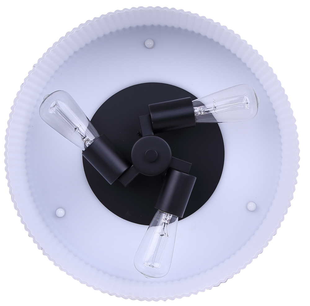 KINSLEA 3-Light Flush Mount Ceiling Light 14" Matte Black with Ribbed Flat Opal Shade