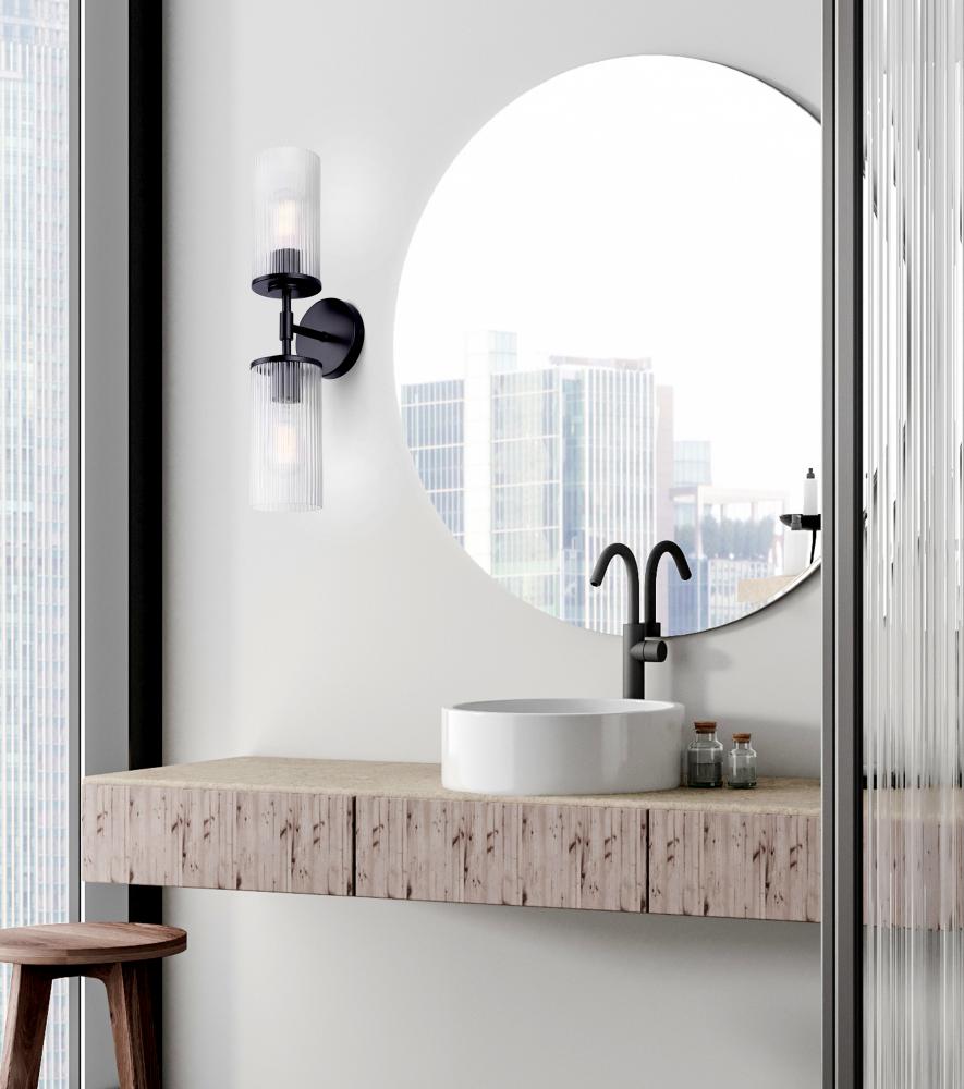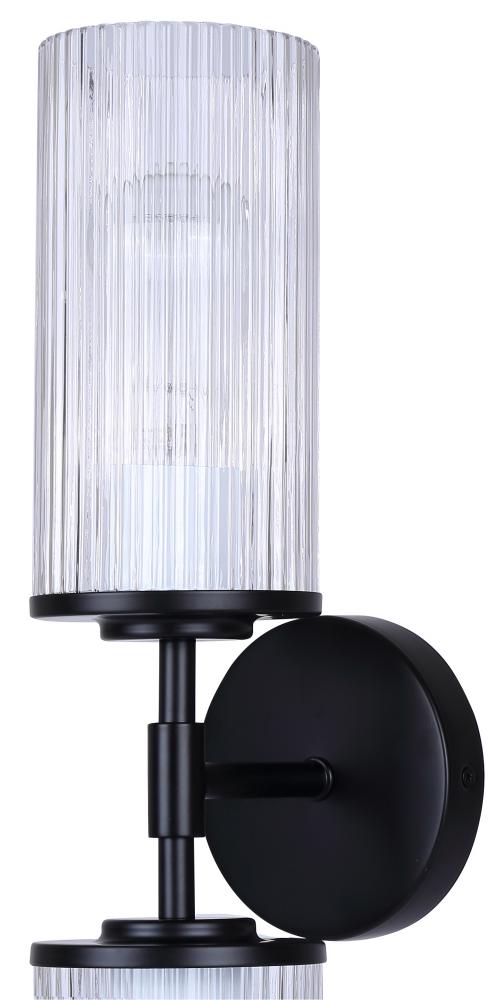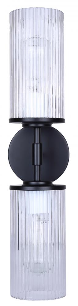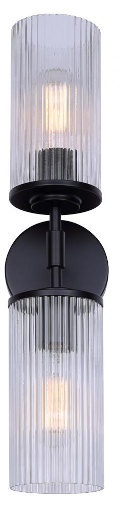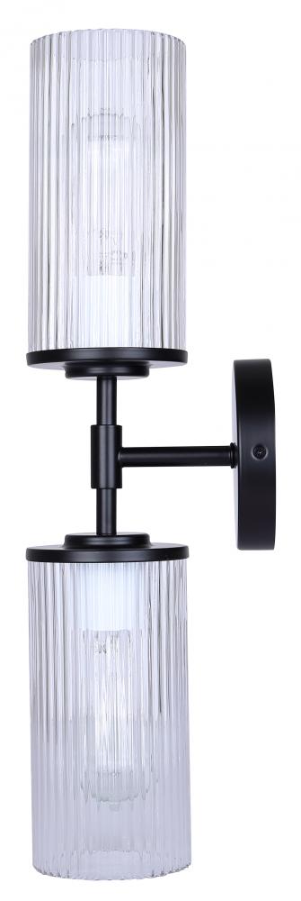 Modern Sophistication: Add a touch of elegance to your living space with the KINSLEA 2 Light Wall Fixture, featuring a Matte Black color finish and Clear Ribbed Glass shades that exude modern sophistication.