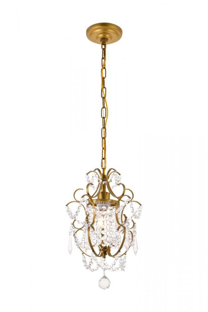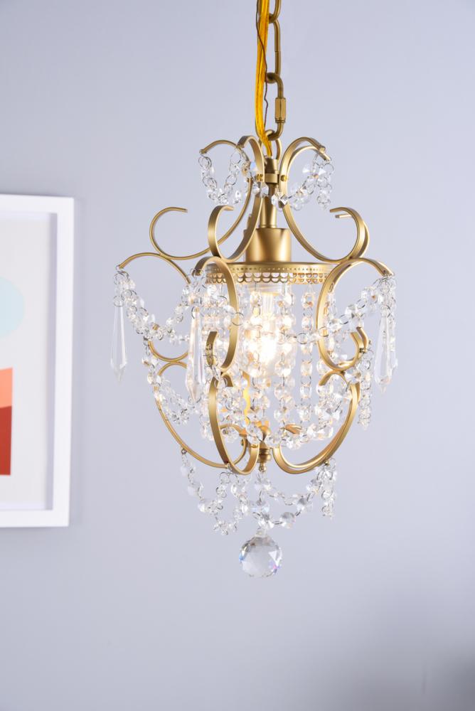 The Kirin pendant fixture is a dazzling bravura of visual whimsy, with swirling brass finish arms that dance around and through brilliant strands of beaded crystal chains cascading from a bright headpiece. The fanciful look also features crystal spears and a multifaceted crystal ball suspended below. This fixture packs a lot of appeal into a relatively compact space (11 inches in diameter) and is sure to add a distinctive accent to a dining room, bedroom, or foyer.