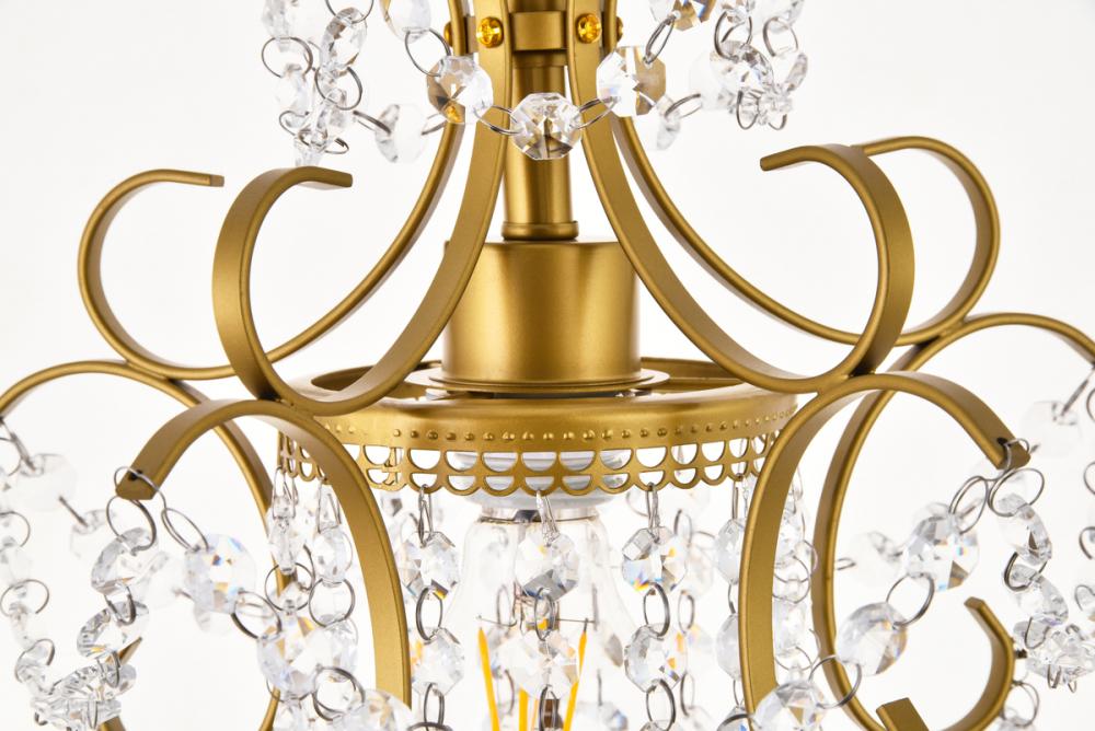 The fanciful look also features crystal spears and a multifaceted crystal ball suspended below.