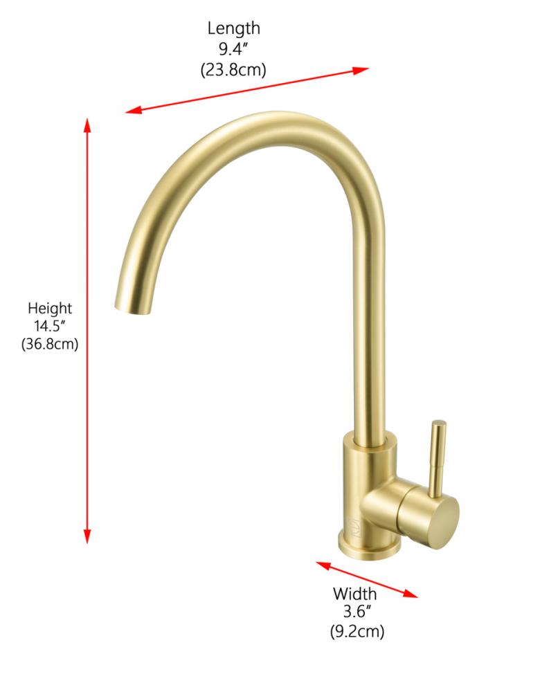 Introducing our efficient kitchen faucet featuring a single-handle lever for effortless water control, allowing precise adjustments to flow and temperature for simplified kitchen tasks. Crafted from high-quality stainless steel, this faucet ensures enduring performance and a sleek, modern design while resisting corrosion. Proudly UPC and IAPMO Certified, it guarantees safety and reliability. Perfect for compact spaces, our 14.5" height faucet combines simplicity and style, complementing kitchen decor while optimizing counter space for enhanced functionality. The gooseneck design adds elegance and practicality, facilitating easy washing of large utensils. With inclusive supply lines, installation becomes hassle-free, saving you valuable time. Delivering a maximum flow rate of 1.8 gallons per minute, it balances power and water efficiency, aiding in cost savings without compromising performance. Equipped with a high-quality ceramic cartridge, expect enduring, smooth, and drip-free operation for a seamless kitchen experience.