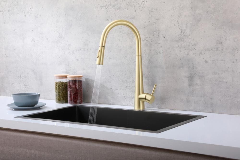 Crafted from high-quality stainless steel, our faucet is not only visually appealing but also built to withstand the test of time. The stainless steel construction ensures corrosion resistance, making it ideal for long-term use in a busy kitchen.