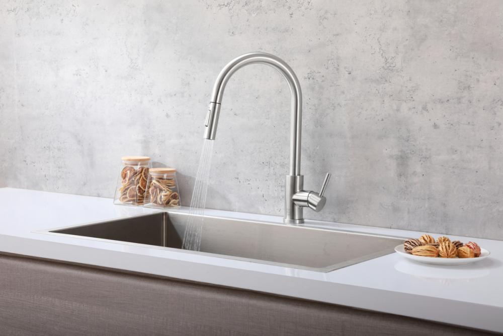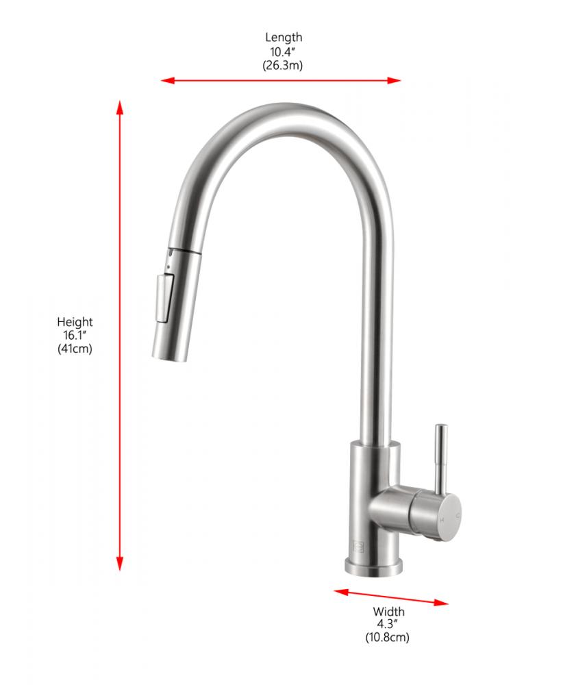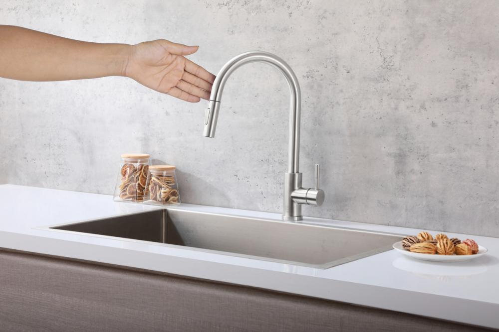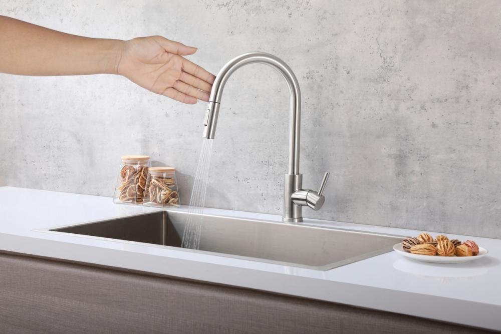 Revolutionize your kitchen experience with our touch sensor feature, ushering in a new era of convenience. Effortlessly control water flow by a simple touch, eliminating the need to handle faucets with dirty hands for enhanced hygiene and efficiency. Crafted from high-quality stainless steel, this faucet guarantees durability, corrosion resistance, and a seamless fusion of sleek, modern design with enduring performance. The retractable pull-down hose ensures unparalleled flexibility and reach, simplifying tasks such as rinsing, cleaning, and filling kitchen items. UPC and IAPMO Certified, it meets stringent safety and quality standards, ensuring reliability and safety. Seamlessly switch between soft spray and aerated rinse modes for versatile functionality. The gooseneck design not only adds elegance but also offers practicality for effortless washing of large pots and dishes. With a single-handle lever, precisely adjust water temperature and flow, enhancing your kitchen's efficiency. Equipped with a high-quality ceramic cartridge, expect enduring, smooth, and drip-free operation, ensuring a seamless daily experience.