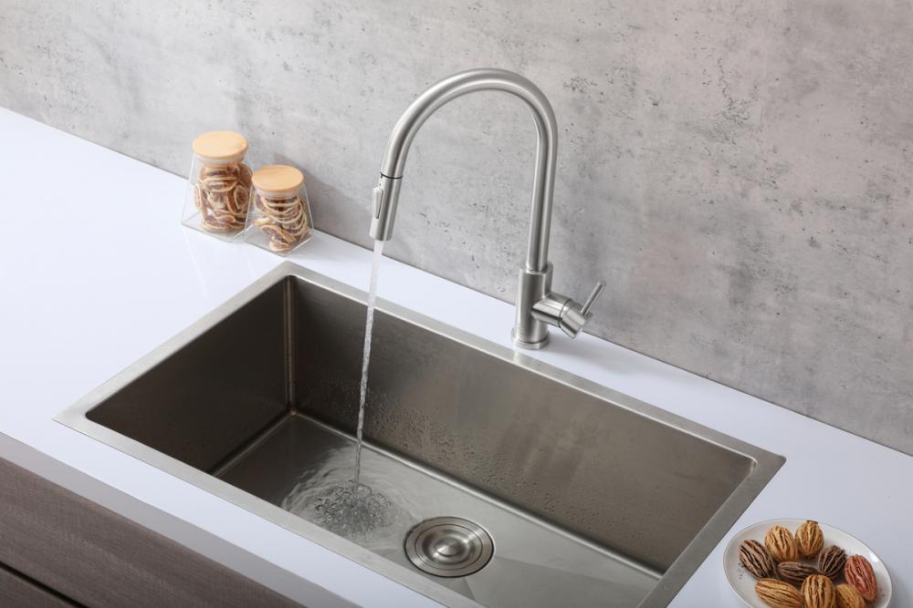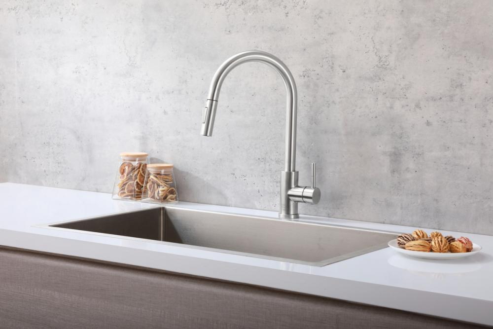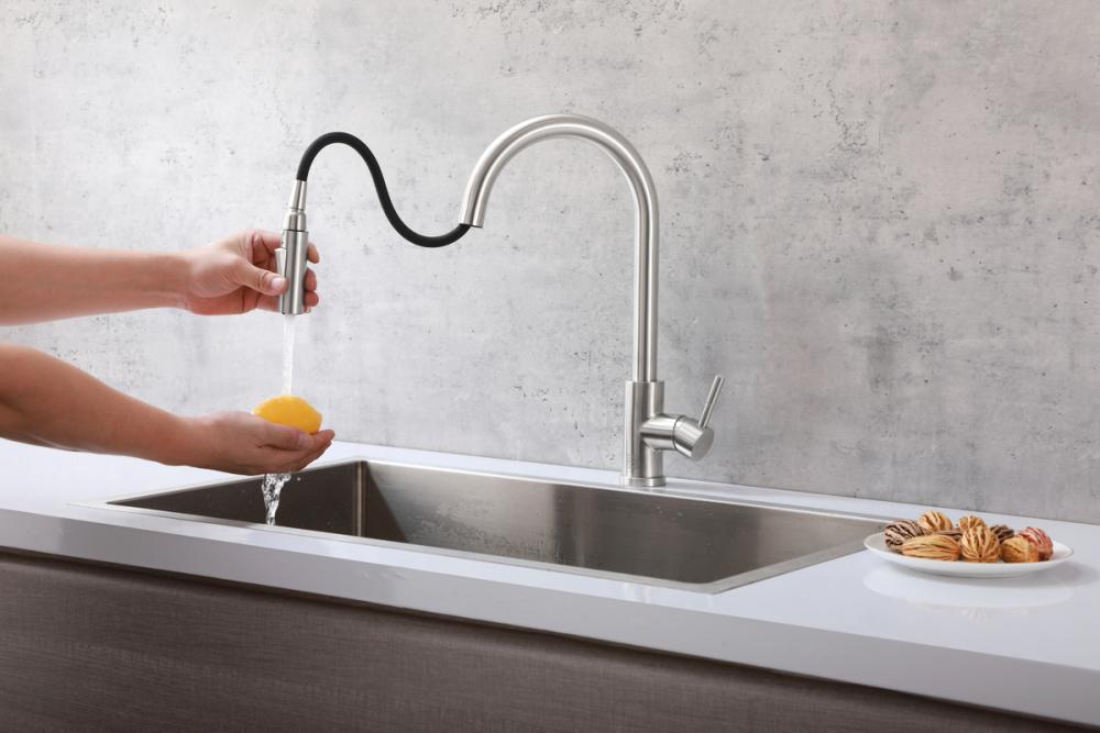 The retractable pull-down hose offers flexibility and reach, making it easier to rinse, clean, and fill various kitchen items. No more struggling to reach the corners of your sink.