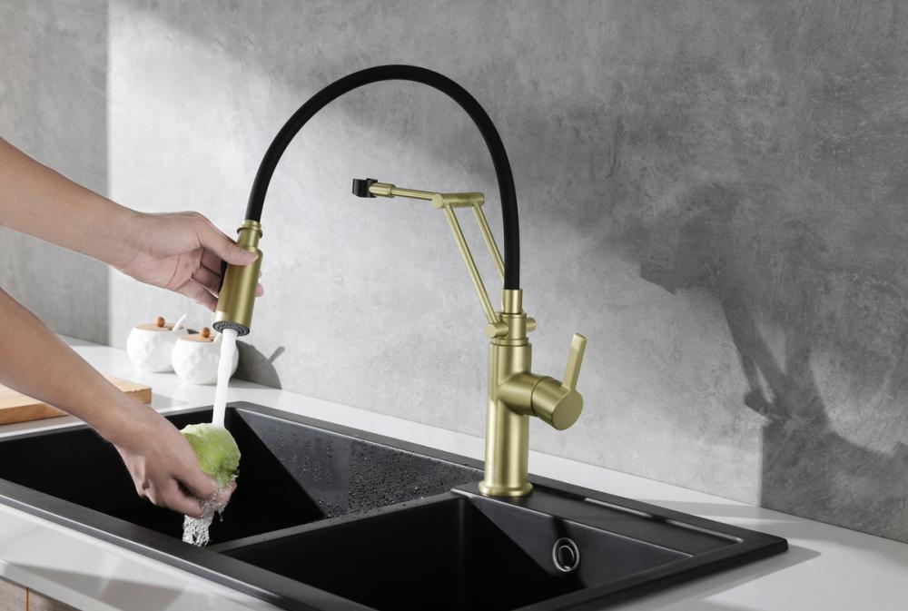 Our kitchen faucet comes with a pull-down sprayer, giving you the flexibility to reach every corner of your sink. This feature simplifies tasks like rinsing vegetables or cleaning the sink with ease.
