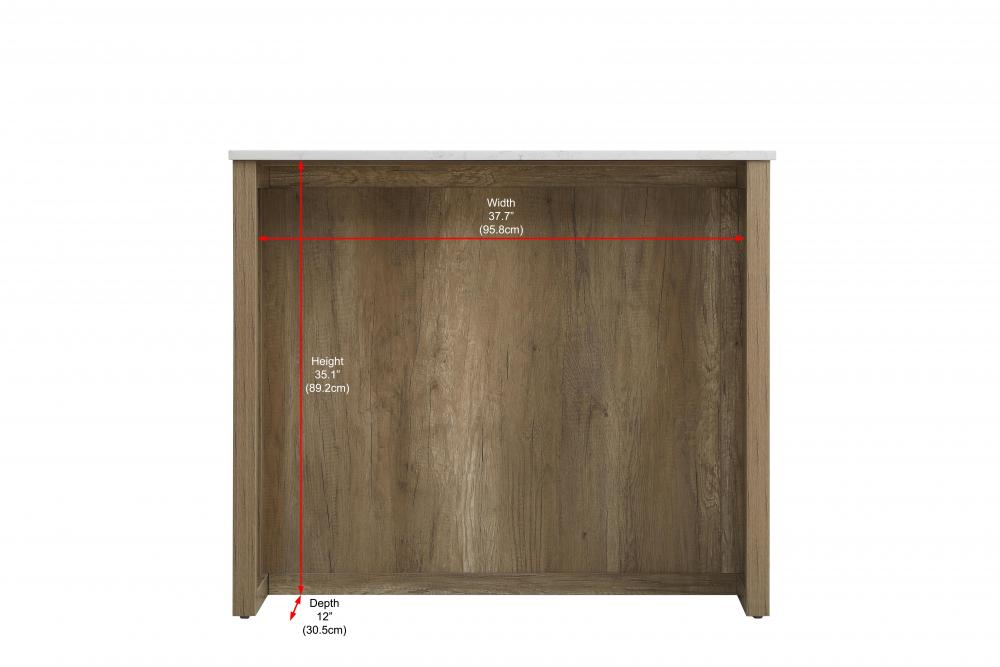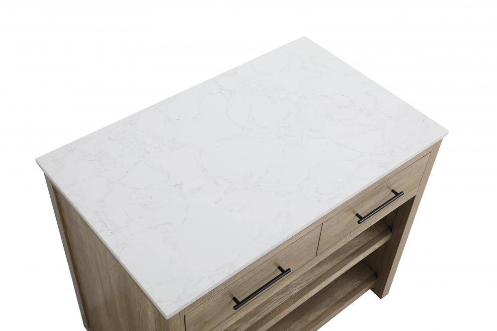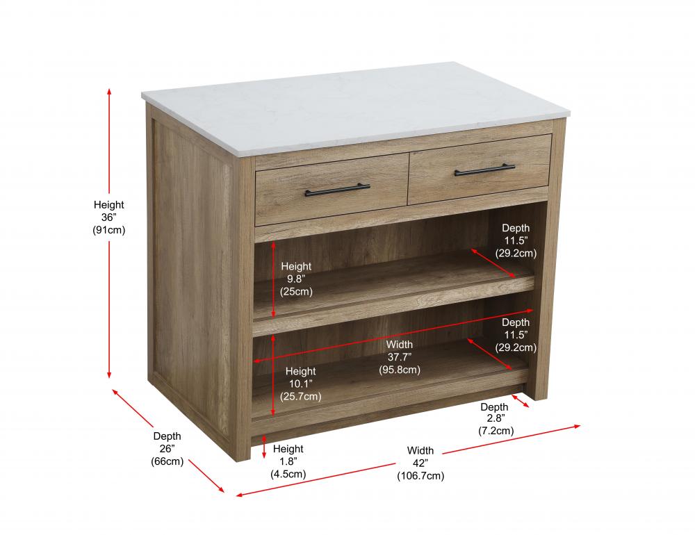Upgrade your kitchen with this versatile kitchen island that combines functionality and style. Measuring 42" L x 26" W x 36" H, this piece features a sleek engineered marble countertop perfect for meal prep or casual dining. The overhang on one side provides space to seat two barstools, making it an ideal solution for cozy breakfasts or entertaining guests.