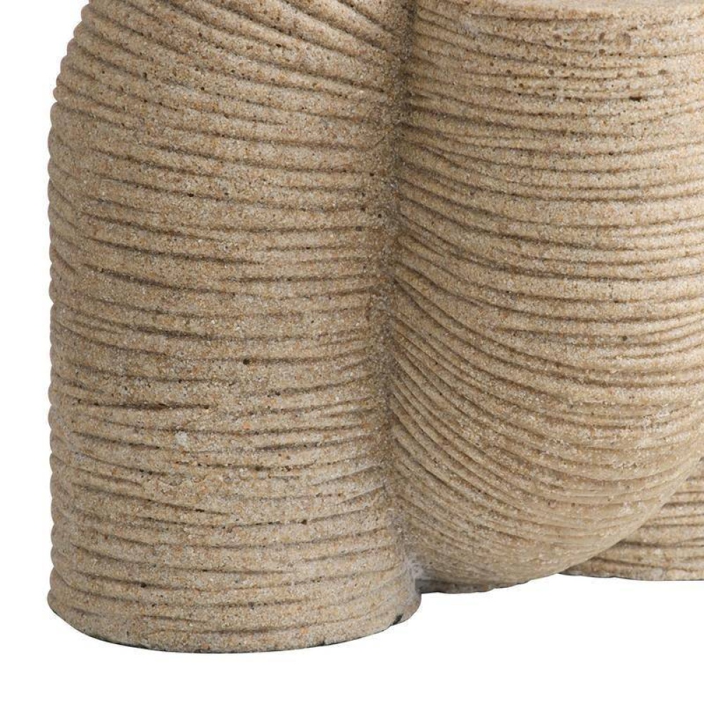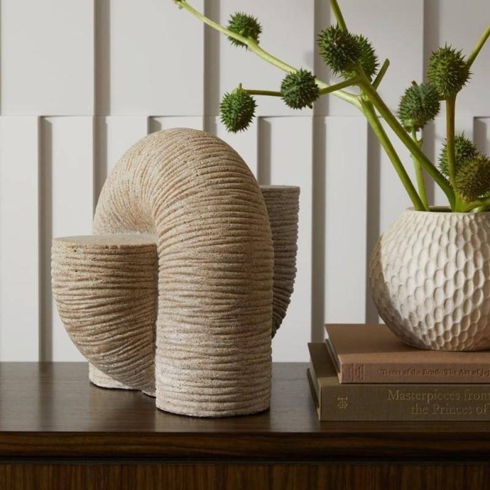 Dual ridged columns bend and stretch to form a single, slinky-inspired work of art. Cast of sand-colored resin, this modernist accent effortlessly dresses up a table or bookshelf. Finish will vary.