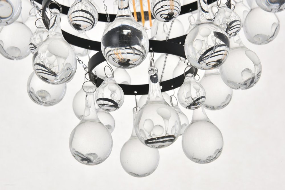 A combination of refined and playful brings us the Kora collection pendant lamp in a black finish. The tiered frame say sophistication, but the multitude of clear crystal droplets indicate a whimsical personality. The ritzy style is perfect for any home--whether it lights up your home bar or your living room, you can't go wrong.