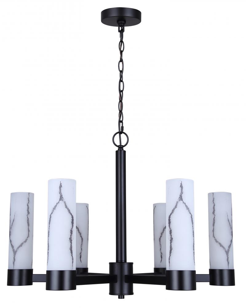 Introducing the KRISTELLA 6 Lt Chain Chandelier, a stunning addition to any modern or contemporary space. Featuring a Matte Black finish and grey marble glass shades, this chandelier exudes elegance and sophistication. With six lights and a capacity for 60W Type A bulbs, it provides ample illumination to brighten up your room. The adjustable height, measuring 26 inches in width and 19.75 inches in height, allows you to customize the chandelier to fit perfectly in your space, whether it's above a dining table, in a foyer, or over a kitchen island. Crafted with quality materials and designed with attention to detail, the KRISTELLA chandelier is sure to make a statement in your home decor.
