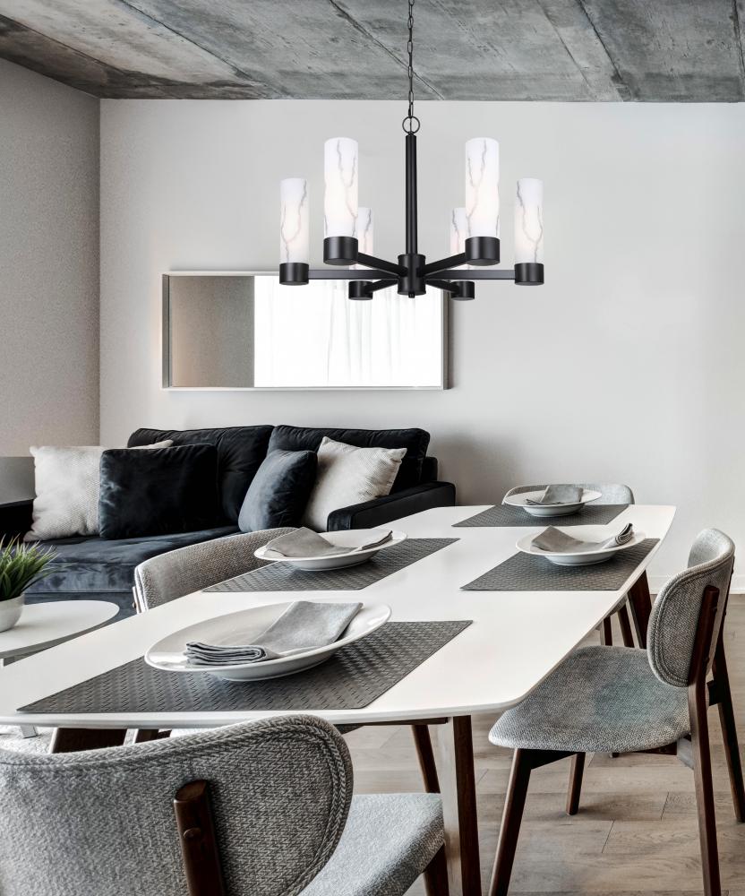 KRISTELLA 6 Light Matte Black Glam Chandelier for Dining Rooms and Living Rooms